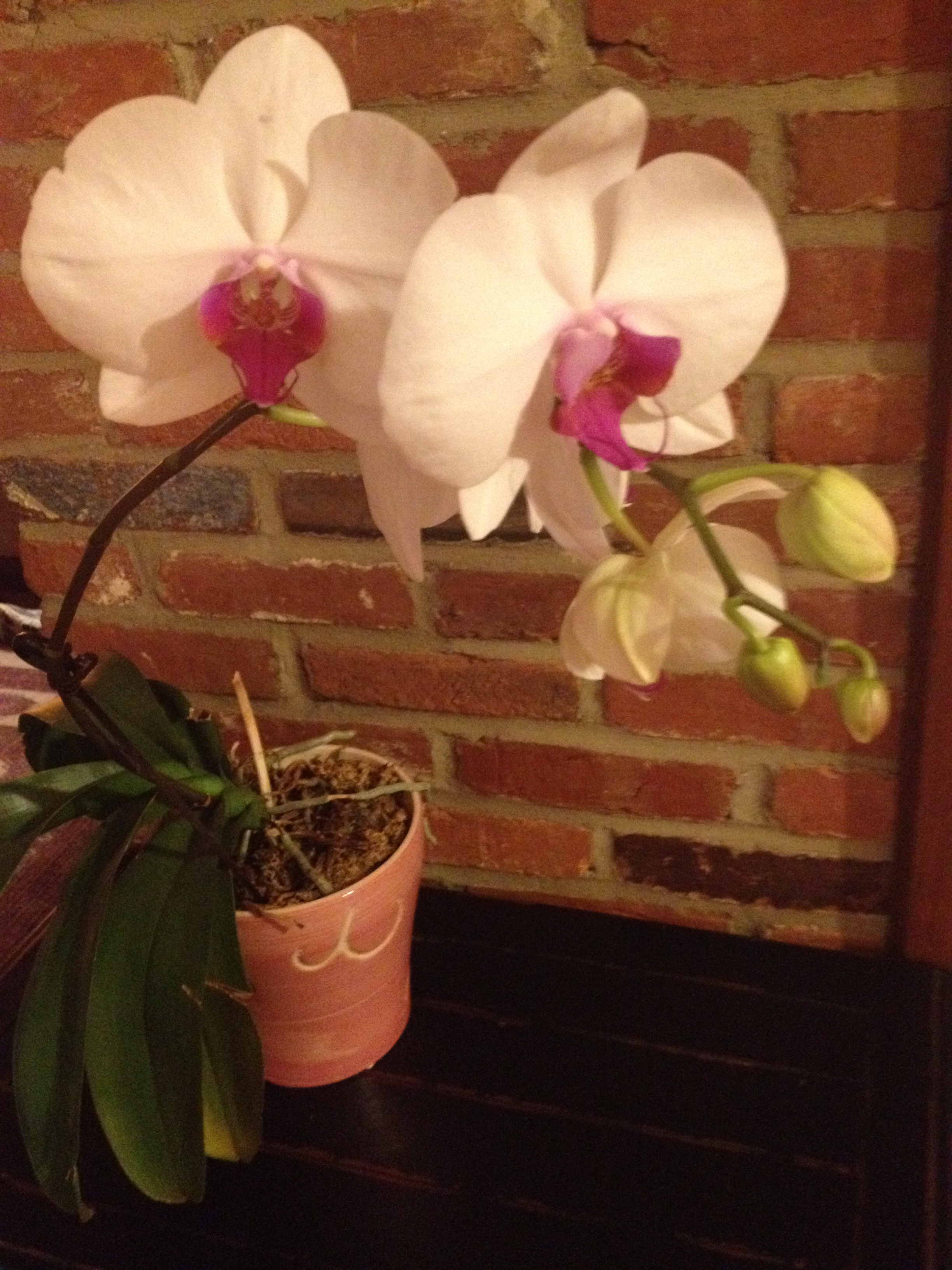 I do not have a green thumb, but today I am thinking about my orchid. I cannot remember what infraction my husband committed when he gave it to me, or if it was just a spontaneous romantic gesture, as he is prone to do. The amazing thing is I have managed to keep it alive for at least two years. And it has bloomed again. Like a phoenix that rises from the ashes. This bloom will last for several months.