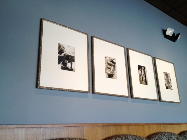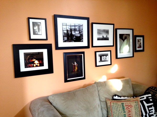 The photographs have grown to fill up the space over my sofa. Each photograph has a story or represents a place that I love. The grouping has pops of red here and there and in the center is not a photograph at all, but a chalk drawing of a Thai dancer done by my great-grandmother. The unifying factor is that all the frames are black. Together, they make up the “Great Wall of Beltsville.” I can almost hear the “Great Wall” shouting at me, each picture telling its’ story over the other, like children vying for attention.