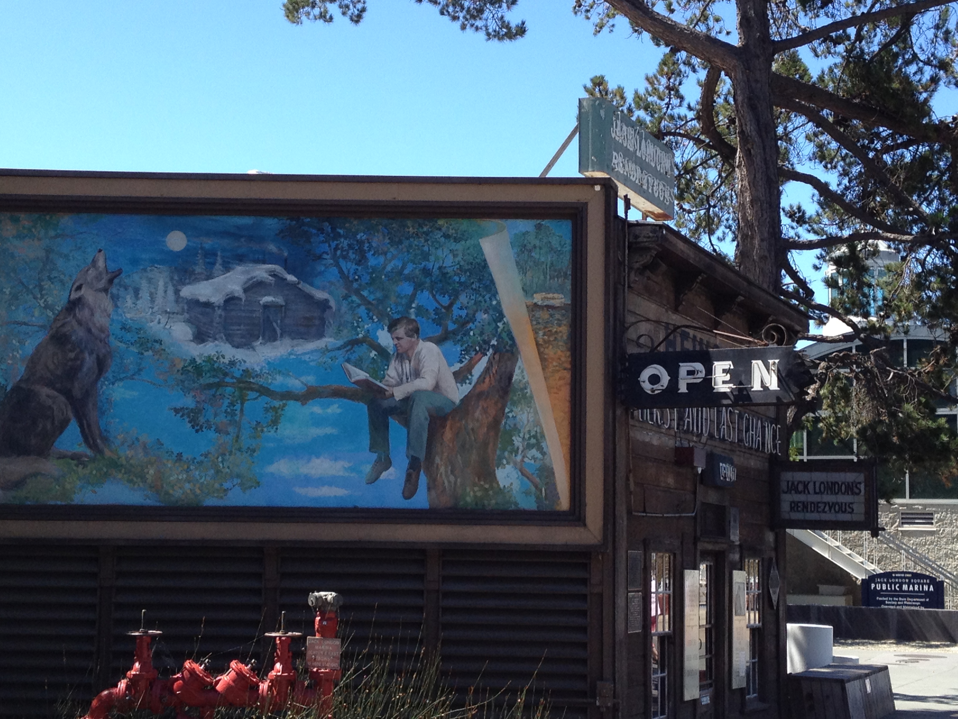 If you threw a rock from Jack London Square in Oakland, you could hit Alaska. Well, at least the cabin Jack London lived in, during the Yukon gold rush in Alaska. Seeing that log cabin, so basic and an obvious tool of survival and necessity, surrounded by palm trees and a beautiful harbor, is a strange site. A place where two worlds collide. Jack London, famed author of The Call of the Wild, The Sea Wolf, White Fang and other classic American novels and stories, is from Oakland, California. Thy have honored his memory and commemorated his work right in the middle of the city.