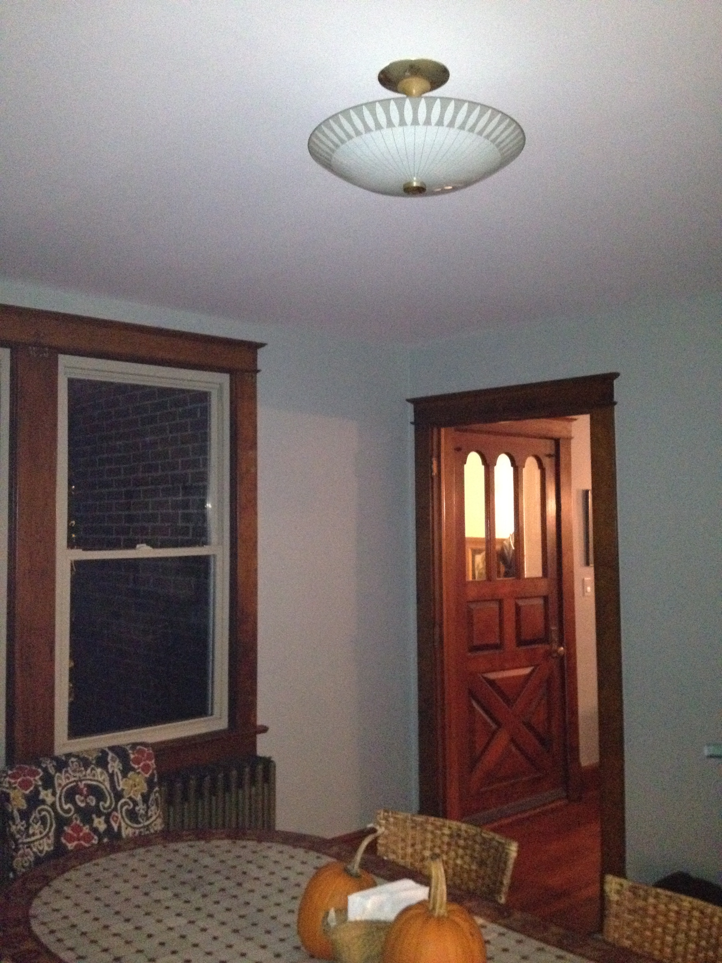 I did not know whether to be happy or sad about it. I liked my version, and it must have been a good idea, but really? Did they have to go and ruin what I thought was an original-ish idea? At least I could take comfort in the fact that they had not painted theirs first and it cost three times what I had paid at Community Forklift for mine. My light was recycled to boot.
