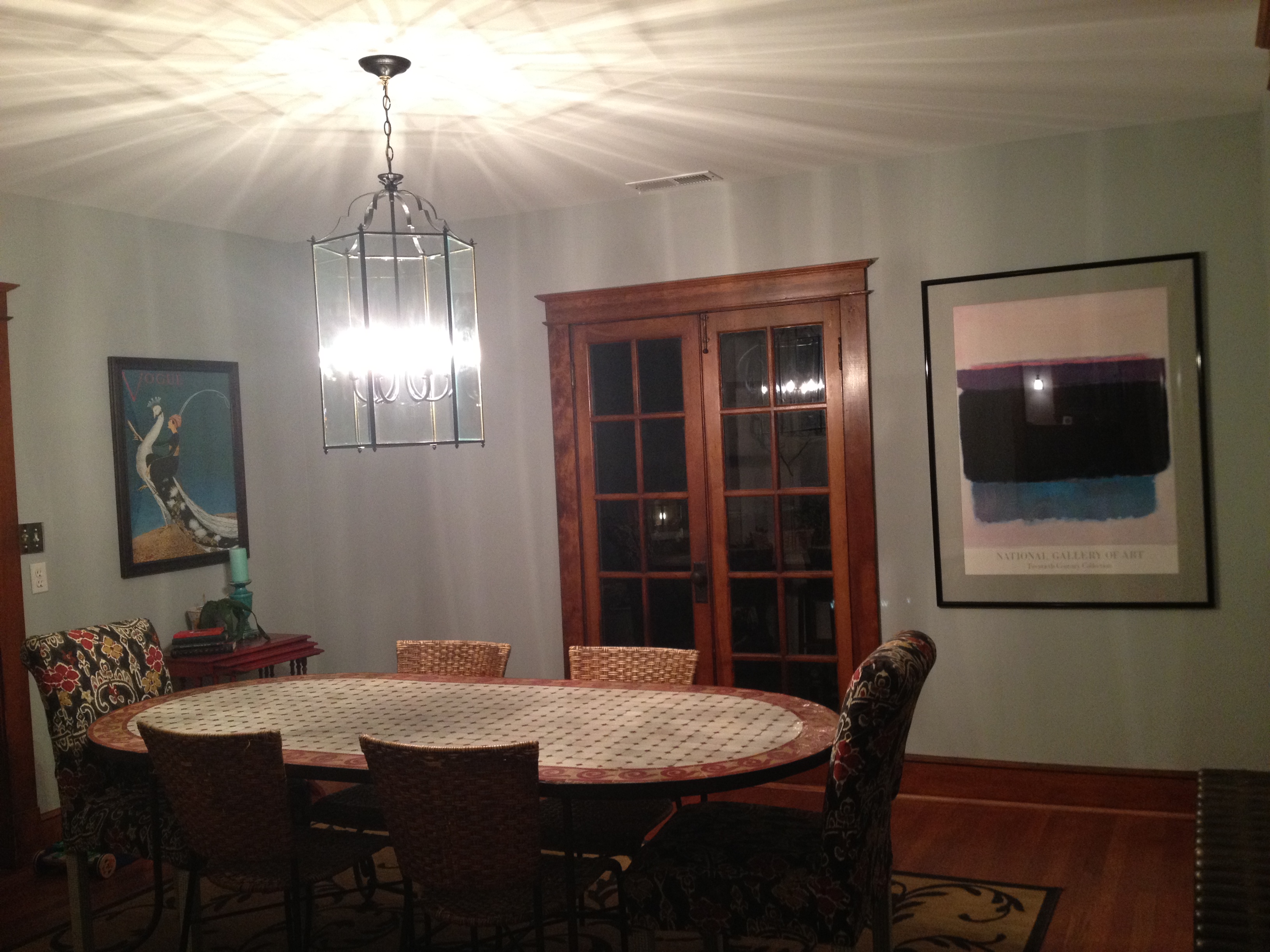 I had this idea that I would replace the light fixture in the dining room with a fa-beaux new one. The old ceiling mount fixture was #1 on my hit list, and it had to go. I wanted something large-scale, that did not obstruct the visual space, something that said WOW! I wanted the room to have a cottage feel. I wanted it to feel warm and cozy and different.