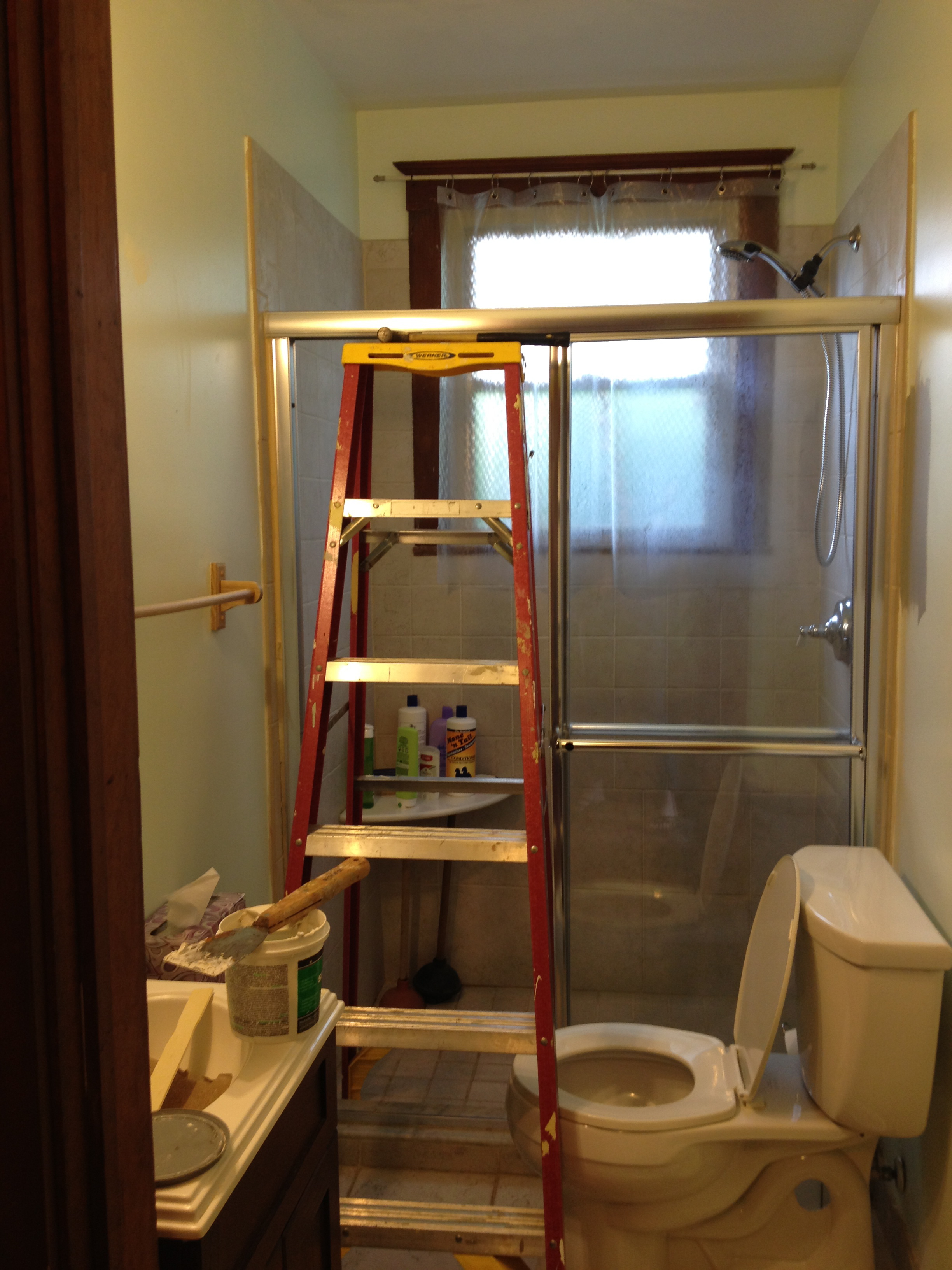 I stared down the list of un-done projects and thought: “The bathroom!” I can paint it during nap-time, one wall at a time, and it really is in need of attention.