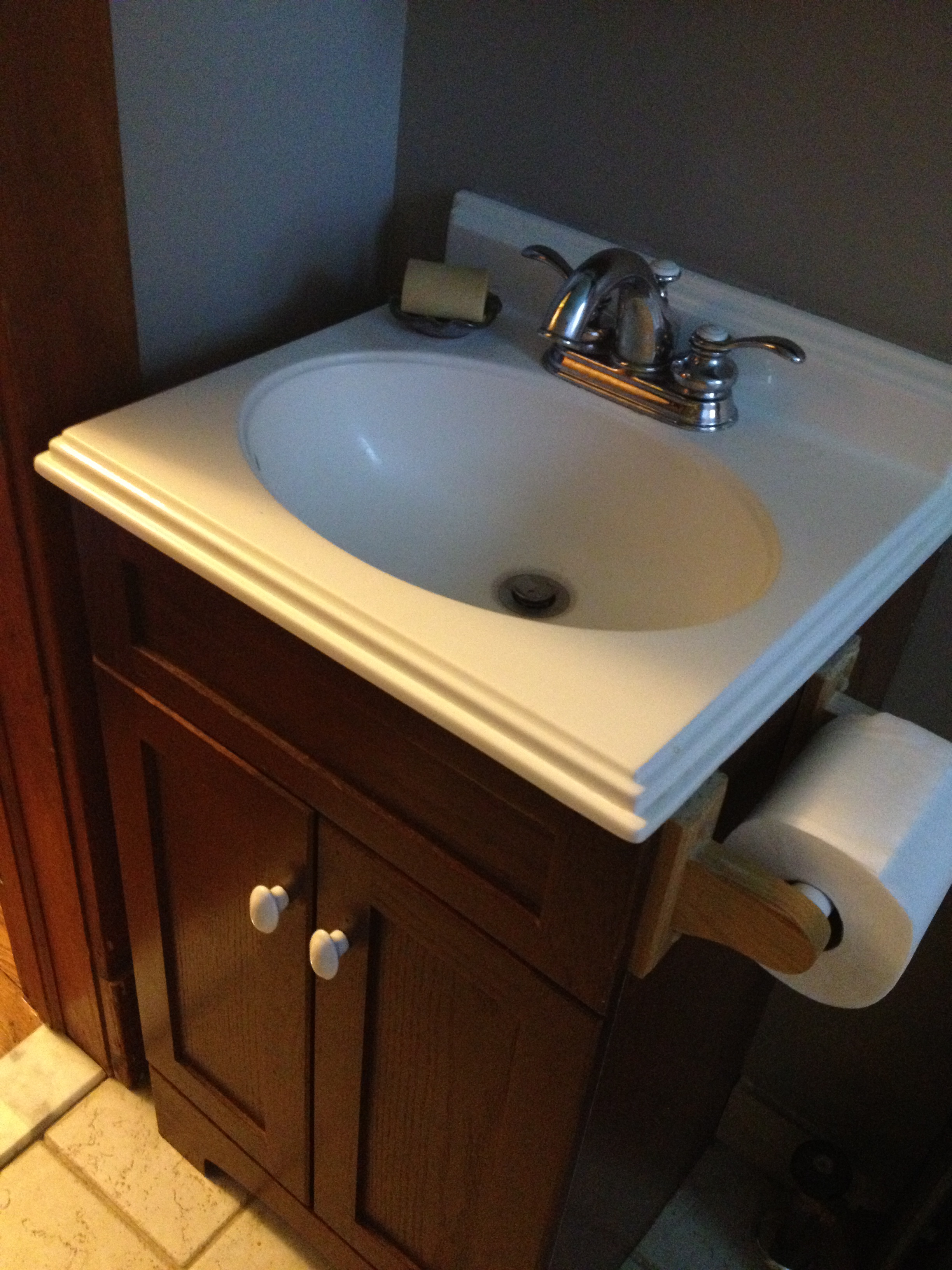There is a gaping hole, between the vanity and the wall, that I refer to as “the pit of despair.” This vanity is on the hit list, but not just yet.