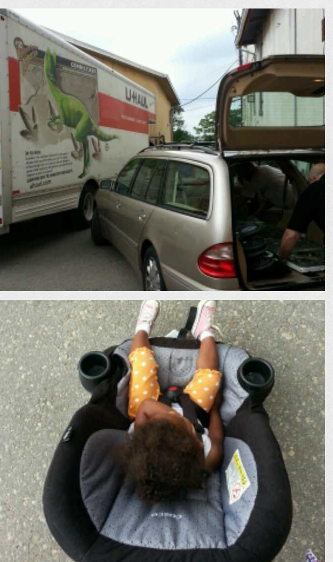 When we got back to Community Forklift, I thought it would be easy. Baby was asleep. I ran in and paid for the antiquities in question. The air conditioning was still running in the car. Only I soon discovered it was too fragile and too big to fit in my enormous station wagon… together with the baby.