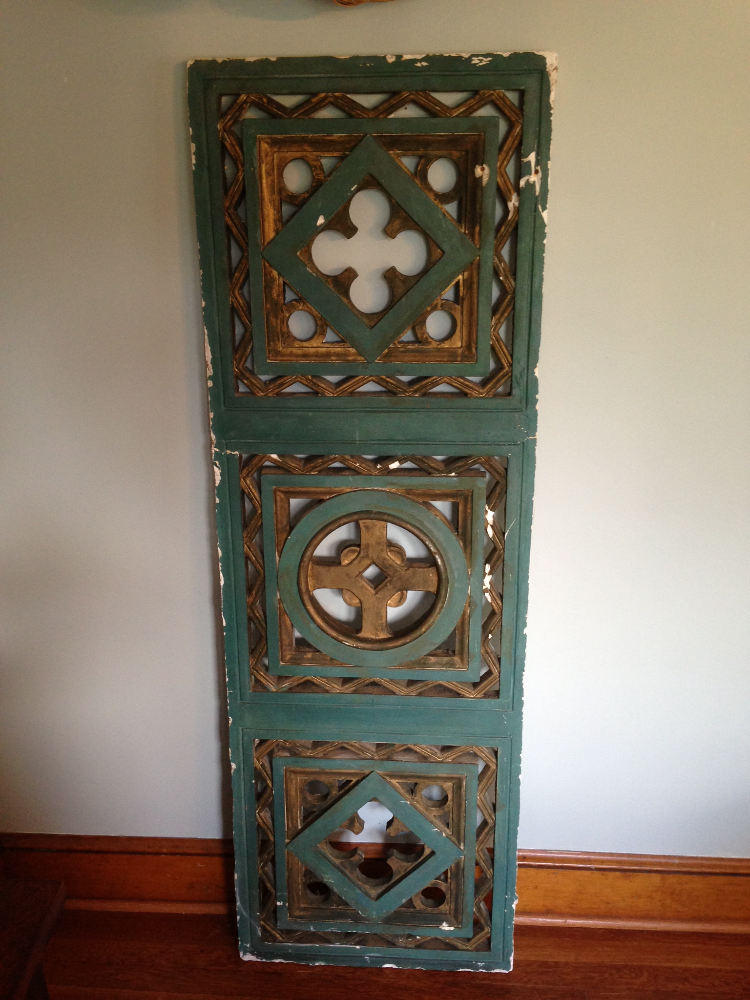 Or something like it. It was definitely a cool piece of architectural…. something. Something that I knew I had to have. It turns out it was a cornice from an old church. A very dirty old piece of plaster, with foils and a cross in the middle.