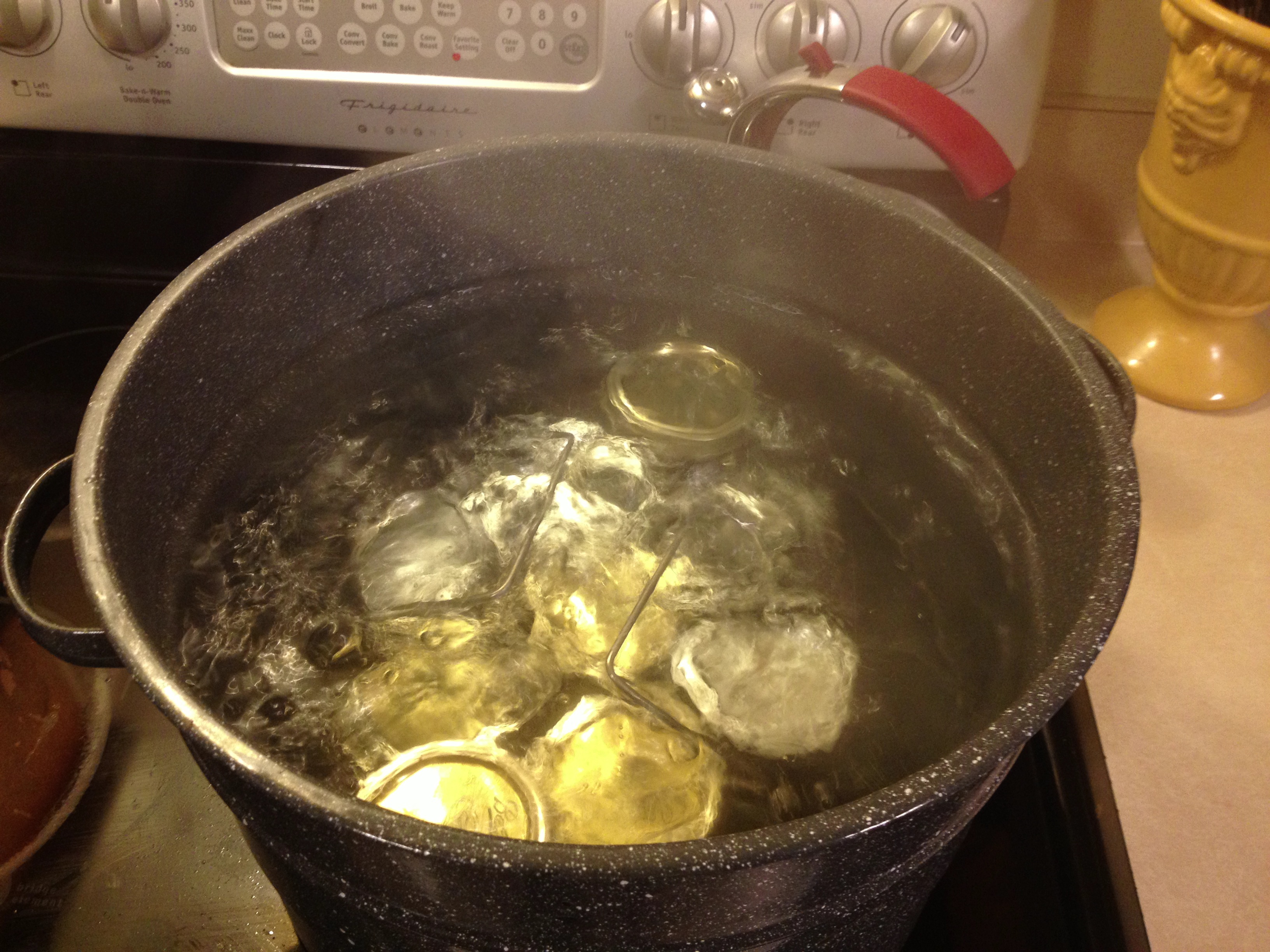 Boiling Pot.I am already thinking about the next item on my canning agenda: Basil Jelly.
