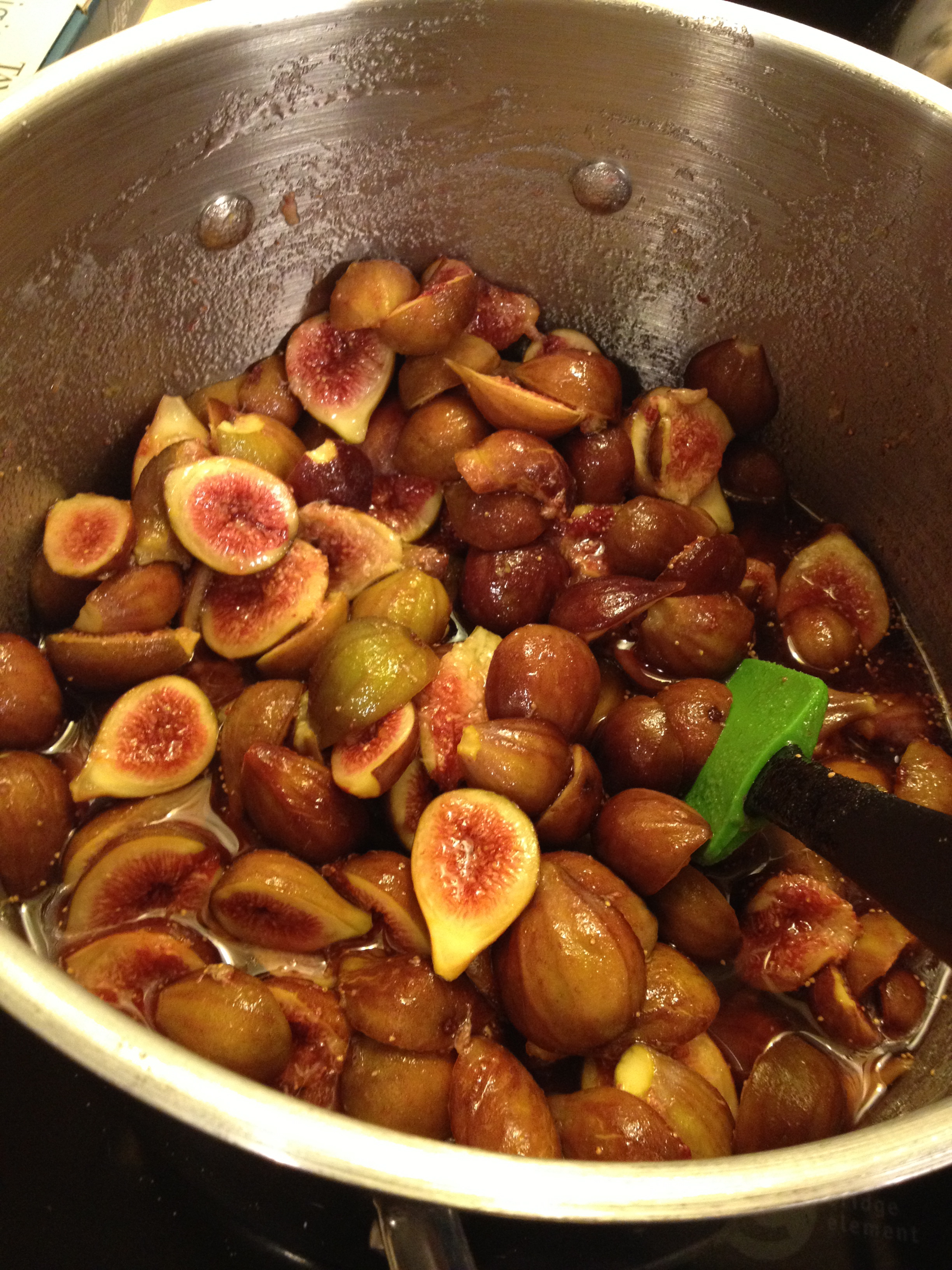 “Drunken Fig Jam”August around here means figs. I don’t know if these figs are just happy because they know I bought two fig trees… oh and a house to go along with them, but they are expressing their appreciation in abundance, and these trees are producing 4-5 pounds of fruit every day.