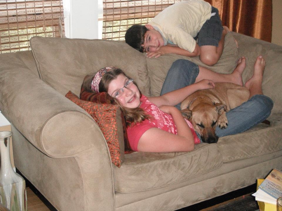 This dog, with shepherding instincts, became NANNY dog. She herded the kids by their sweatshirts, and saved babies from falling, more than once! She did not seem phased when baby Regina appeared and within a few hours started crawling so she could GET THAT DOG. Cocoa played dress up with the kids, hide and seek with the baby, and frisbee with Dad.